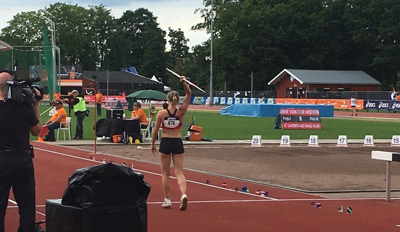 We begonnen aan de warming-up en het voelde allemaal heel erg goed. Mijn lichaam stond op scherp. Mijn rug was in de laatste week goed los gekomen en ook van mijn schouder had ik totaal geen last. Na een klein uurtje opwarmen, moesten we ons melden in de callroom. Want zo gaat dat op een groot toernooi. Hier wordt gecontroleerd of iedereen er is, of onze kleding, tassen en de schoenen aan alle regels voldoen. En uiteindelijk worden we vanuit de callroom de baan op begeleid. Eenmaal op de baan begint iedereen met het uitzetten van haar aanloop en gaat het van start. Op het warming-up veld mochten we niet inwerpen, dus iedereen wil nu juist haar kans grijpen om alles los te krijgen en te testen. Nog steeds voelt het bij mij heel erg goed. Het aanlopen gaat lekker, goede pasfrequentie, mooie snelheid. Laat de wedstrijd maar beginnen!